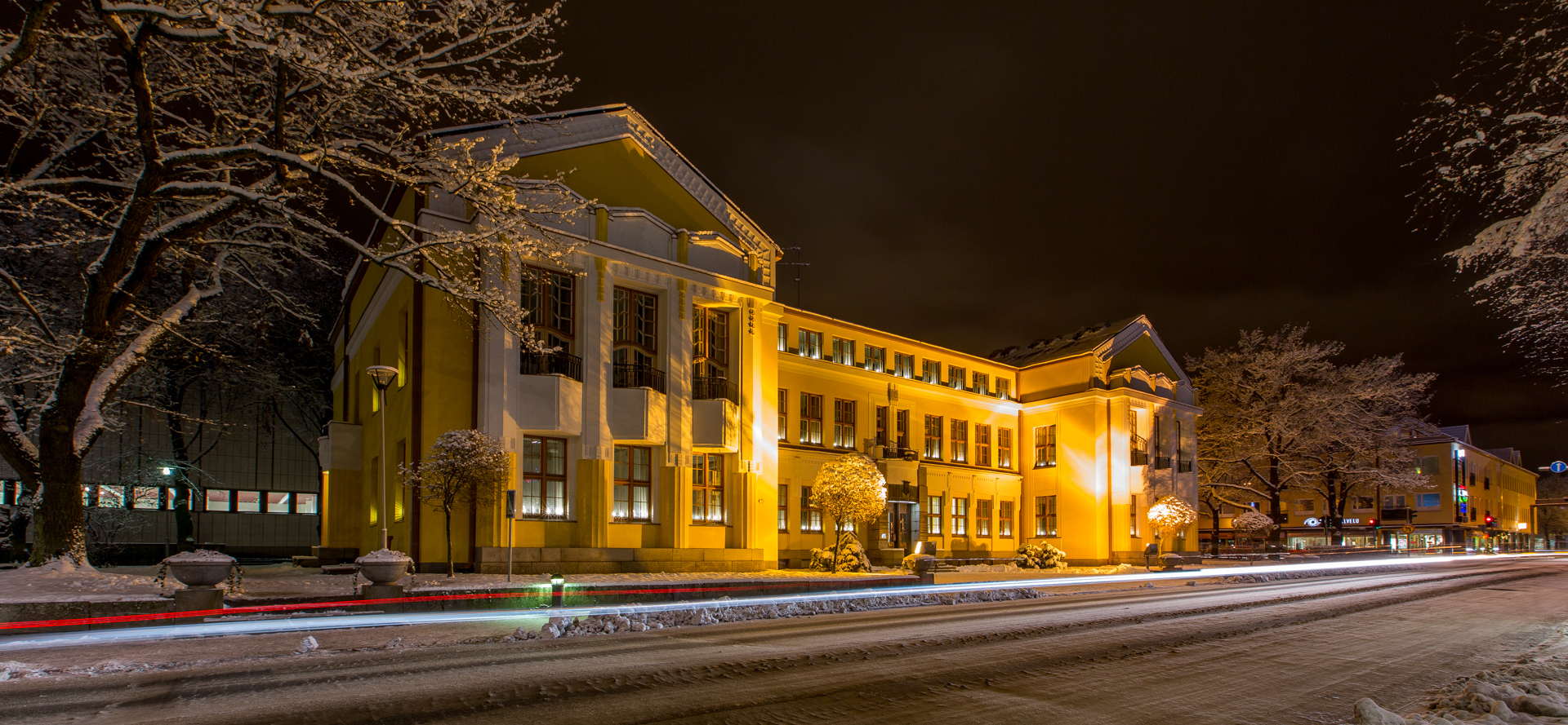 Mikkelin kaupungintalo valvoo rallin lähtö- ja maalitapahtumia, jotka sijoittuvat torille 17.1.2026. Kuva: Kimmo Iso-Tuisku